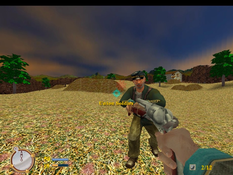 Built on the Lithtech Jupiter engine (R.I.P. Monolith) Gods and Generals appears similar to a lot of the FPS games that I certainly, but you may have played in the mid-2000s. Aside from the No One Lives Forever titles that share the same engine, other shooters do spring to mind. A Civil War first-person shooter, like a World War 1 first-person shooter, is an interesting concept in theory. You might picture long lines of soldiers firing at each other, in an open field clogged in smoke and terror. Being based on N.O.L.F. 2’s engine, the game takes some elements from that vision and spins them on their head. As a soldier in the runner-up’s side of the Civil War, you’re largely a lone wolf. Occasionally, you have to loot ammo off the fallen soldiers, which puts the player in mind of Solid Snake and the On-Site Procurement that is drilled into the player. Completion of objectives awards you experience points that can greatly help you in the campaign, as it did in N.O.L.F. 2.