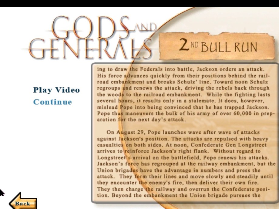 Gods and Generals takes place during some of the most fiercely fought conflicts of the Civil War, you typically play as a Confederate Soldier behind the scenes, on secret reconnaissance and sabotage work. Fighting off scouting parties and guard posts as you help the Confederacy try to turn the tide of battle.