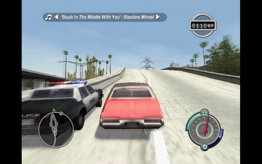 The game boasts two distinct types of gameplay over its 15 chapters. Driving and, for lack of a better term, shooting sections. Driving involves getting your car from point A to point B intact, avoiding the cops and obstacles, like the other commuters on the L.A. freeway. Shooting will feel more familiar to anyone who’s played a third-person shooter. The game introduces the option to take a human shield, which makes moving slower, and gives you a tense stand-off with the law enforcement. Reservoir Dogs is judging you, if you gun down innocents with nary a care, the game will brand you a “Stone Cold Psycho”, which might not mean much to you at the moment. Especially as this will fill up the adrenalin meter, allowing you to use special moves and even slow motion. This will ultimately come back in what ending you get, making Reservoir Dogs a prototype for those oh-so popular Morality Choice systems that games would embrace a few years later.